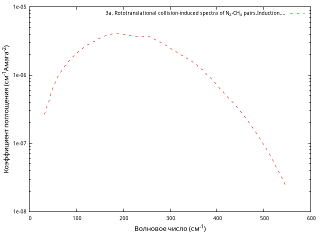 Рисунок 3a. Rototranslational collision-induced spectra of N₂-CH₄ pairs.Induction by: CH₄ Omega .